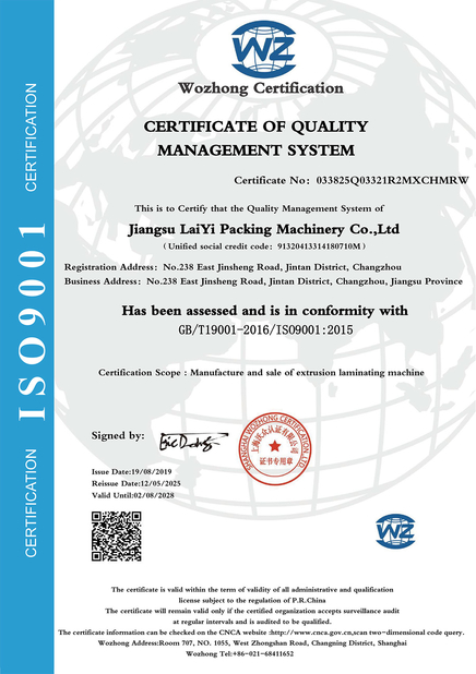 Стандартный:CERTIFICATE OF OUALITY MANAGEMENT SYSTEM Число:033825003321R2MXCHMRW Дата выпуска:2019-08-19 Дата истечения:2028-08-02